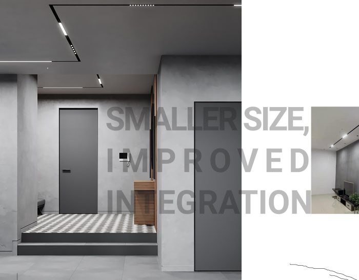 ریل از جنس آلومینیوم اکسترود با پوشش رنگ الکترواستاتیک مشکی مات است. نوع اتصال چراغ های مختلف روی ریل براساس نیروی مغناطیسی است. ( علت نام گذاری این سیستم همین مورد است ) عرض بخش توکار ریل 25 میلی متر است. طراحی ریل توکار به صورت نصب بدون لبه است. این طراحی براساس نصب برای سقف کاذب ( کناف، رابیتس و … ) در نظر گرفته شده است. اتصالات به صورت مستقیم و زوایای روی سقف و اتصالات مختلف سقف و دیوار، محدودیت اجرایی برای طراحی های مختلف را از بین برده است.
