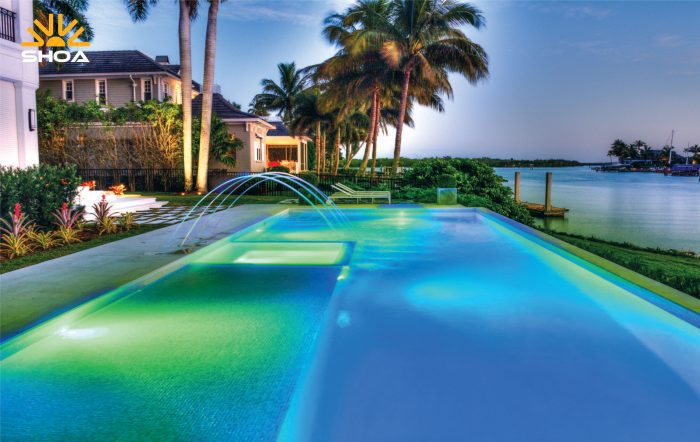 امروزه استخر ها و آبنما ها فضای خاصی در فضاهای شهری و ساختمان ها ایجاد کرده است که باعث جذابیت بیشتر گشته است. چراغ های استخری یکی از مهمترین المان هاییست که به بهتر دیده شدن این فضاها کمک می کند. در واقع یکی از جذابیت هایی که می تواند فضای استخر شما را پرطرفدارتر کند نورپردازی صحیح و درست است. استفاده از انواع چراغ های استخری و آب نما سبب می شود علاوه بر تامین نور فضا در عین حال ترکیب آب و نور زیبایی شگفت انگیزی را ایجاد کند البته در وهله اول وجود روشنایی در استخر باعث کارایی آن در شب می شود و می توان از نورپردازی آن لذت برد. استفاده از انواع چراغ استخری در استخرهای روباز و سرپوشیده سبب می شود آب جلوه بیشتری پیدا کند و این امر در پارک ها و بوستان های مختلف حائز اهمیت است. چراغ های استخری بخاطر غوطه ور بودن در آب و شرایط محیطی که دارد و دشواری تعویض آن ها نیازمند این است که از کیفیت بسیار بالایی برخوردار باشند. این چراغ ها باید به گونه ای طراحی شوند که سبب برق گرفتگی نشوند به همین دلیل ولتاژ مورد استفاده این محصولات معمولا کمتر از ۲۴ ولت هستند و دارای ترانسی جهت تبدیل ولتاژ برق شهری به ولتاژ مورد نیازشان می باشند. چراغ های استخری شعاع دارای IP68 که نشانگر حفاظت محیطی بسیار بالای این محصول در برابر آب و گرد و غبار می باشد. که مناسب داخل آب می باشد و نباید از آنها در محیط بیرون از آب استفاده کرد.